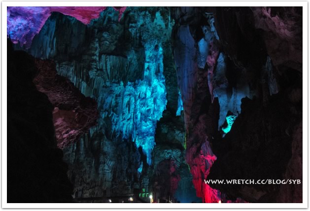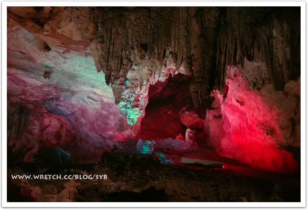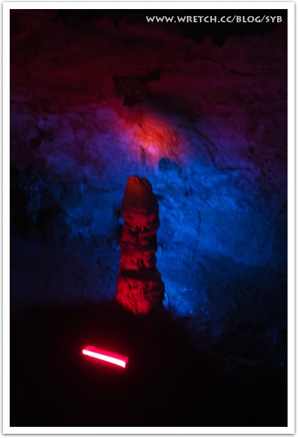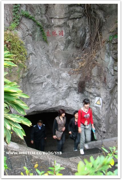 入洞走一小段就來到試劍石。明《赤雅》載:“其最奇者,有石懸空而下,狀若浮柱,去地一線不合。聞昔有神人名揭諦者,試劍於此。”