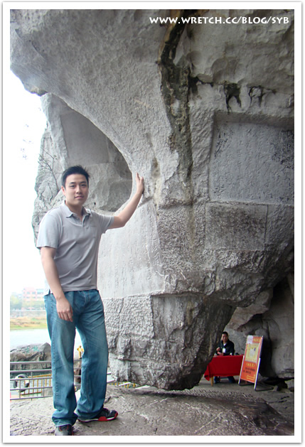 還珠洞內的文物石刻很多,是伏波山的精華所在。其中這尊佛像,佛像右方有個剛好夠一隻手伸過的洞,讓遊客來”抱佛腳”。所以看佛的右手右腳都被摸黑了。